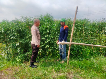 Bhabinkamtibmas Kemantren Tinjau Perkebunan Kacang Panjang Dukung Ketahanan Pangan